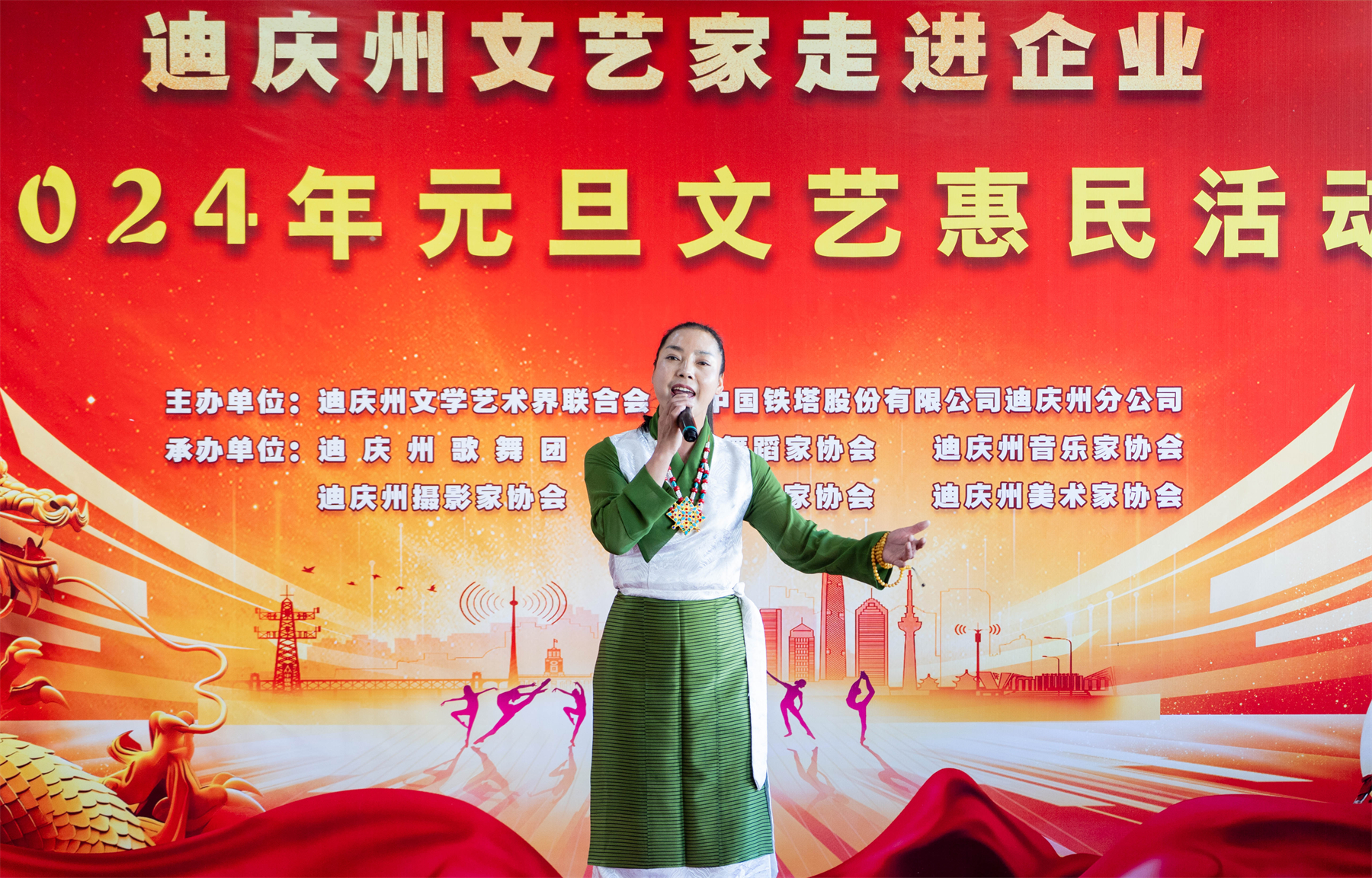 12月27日,迪慶州文聯(lián)組織文藝家走進(jìn)中國鐵塔股份有限公司迪慶州分公司開展2024年元旦文藝惠民活動。