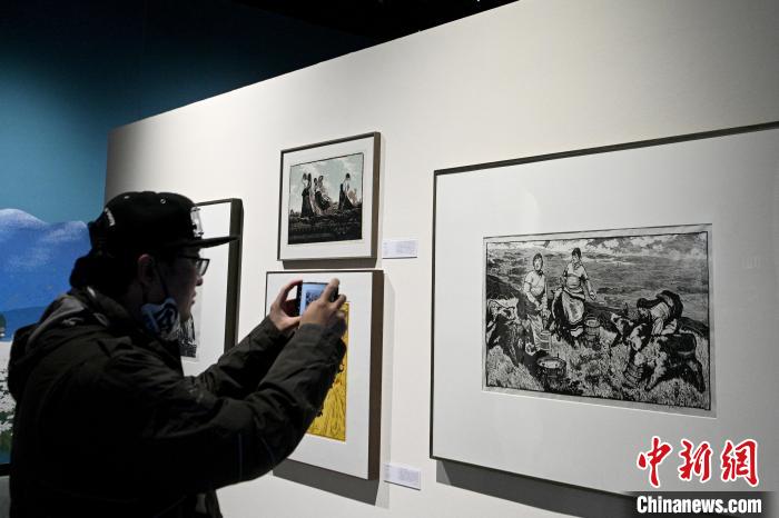 圖為游客參觀《追尋香格里拉——青藏高原東麓的遷徙史詩(shī)與流動(dòng)對(duì)話》展覽。中新網(wǎng)記者 李嘉嫻 攝