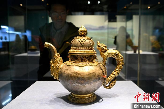 圖為展覽上展出的銀質(zhì)嵌珠茶壺。中新網(wǎng)記者 李嘉嫻 攝