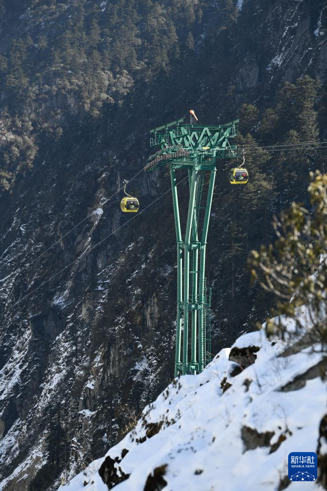 這是1月10日拍攝的海螺溝景區(qū)內(nèi)運(yùn)行的觀光纜車。新華社記者 胥冰潔 攝