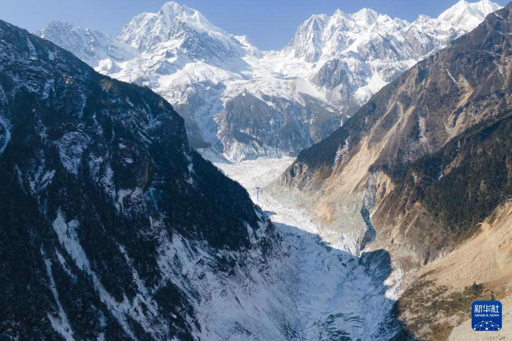 這是1月10日拍攝的海螺溝冰川(無(wú)人機(jī)全景照片)。新華社記者 胥冰潔 攝