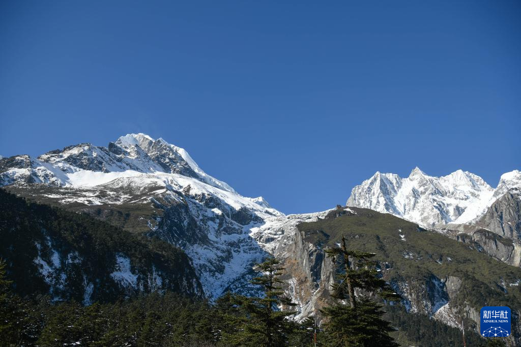金燦燦的陽(yáng)光照在金銀峰、貢嘎雪山上。記者 劉忠俊 攝