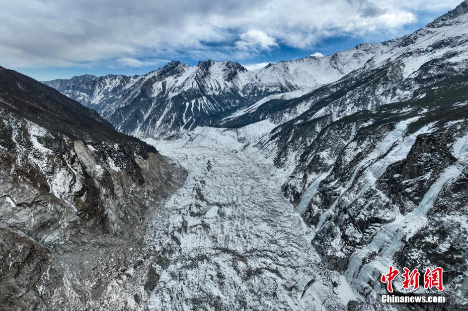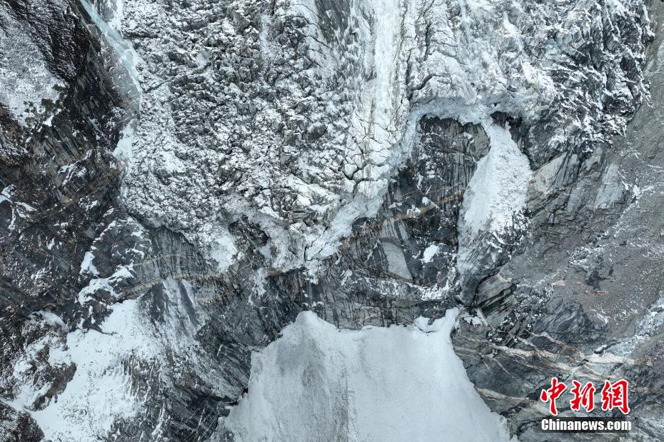 2月2日,四川省甘孜藏族自治州瀘定境內(nèi),一場(chǎng)雪后的貢嘎山披上了厚厚的“白紗”,在貢嘎山東坡順山而下的冰川沿海螺溝山谷綿延10多公里,就像一條“巨龍”盤在山谷中,十分壯觀。貢嘎山坐落于橫斷山系大雪山中段,主峰海拔7756米,被譽(yù)為蜀山之王。海螺溝冰川也是貢嘎山數(shù)十條冰川中規(guī)模最大、形態(tài)最美的一條。經(jīng)歷了2022年“9·5”瀘定地震后,海螺溝景區(qū)道路等重建工作完成,步游道、旅游服務(wù)設(shè)施升級(jí),游客逐步回升。航拍鏡頭下的海螺溝冰川粒雪盆下端的“冰川冰”。記者 劉忠俊 攝