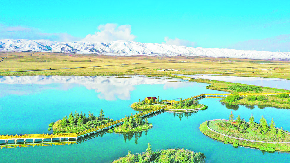 自海北藏族自治州海晏縣境內的包呼圖山蜿蜒前行,一滴滴匯聚的雪山融水時而湍急時而平緩,在流經草原、山川后沖刷出適宜人類居住的谷地,山水相映、水城相依,寫就人水和諧共生新篇章。
