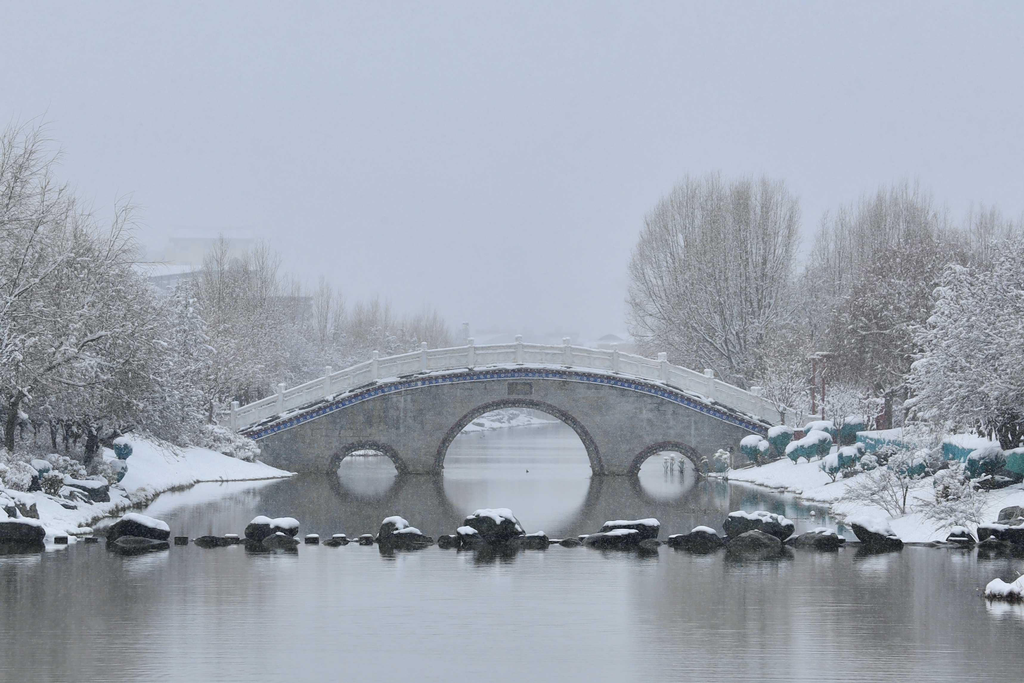 春節(jié)后第一場雪,雪花紛紛揚揚飄落,為香巴拉公園內(nèi)的各處景觀增加了別樣意趣。