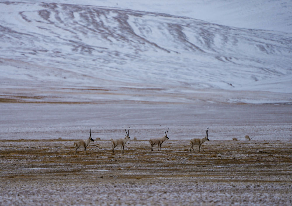 生活在三江源國家公園唐北片區(qū)的藏羚羊(2024年2月1日攝)。新華社記者 儲國強(qiáng) 攝