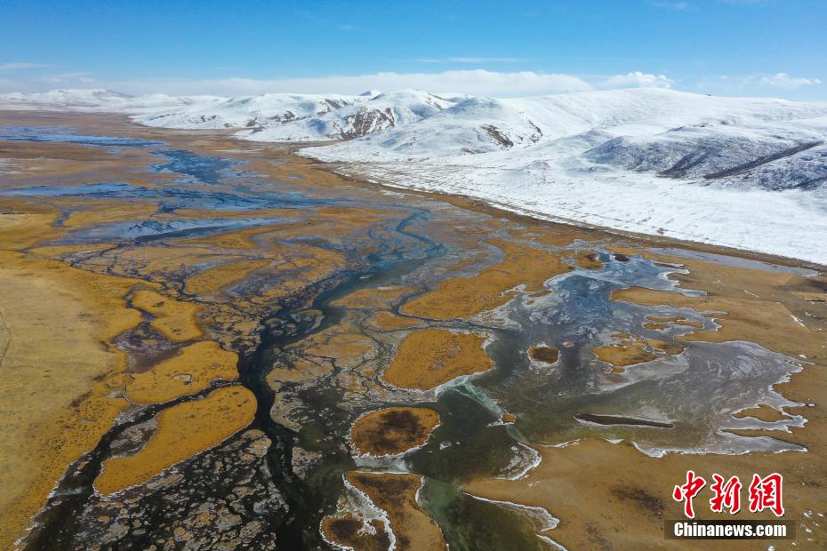 11月15日,航拍青海玉樹隆寶灘國際重要濕地冬日旖旎景色。降雪過后,位于青海省玉樹藏族自治州玉樹市境內(nèi)的隆寶灘國際重要濕地連綿的山巒被白雪覆蓋,與金色的草地和蜿蜒的河流交相輝映,景色旖旎。[詳細(xì)] -