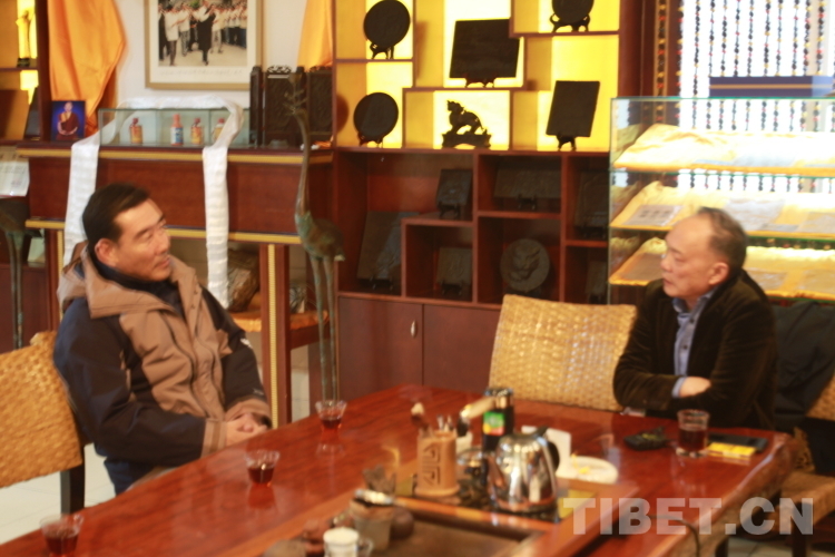 圖為雅安茶廠負(fù)責(zé)人李朝貴(右)接受中國西藏網(wǎng)記者采訪 攝影:登真巴珍