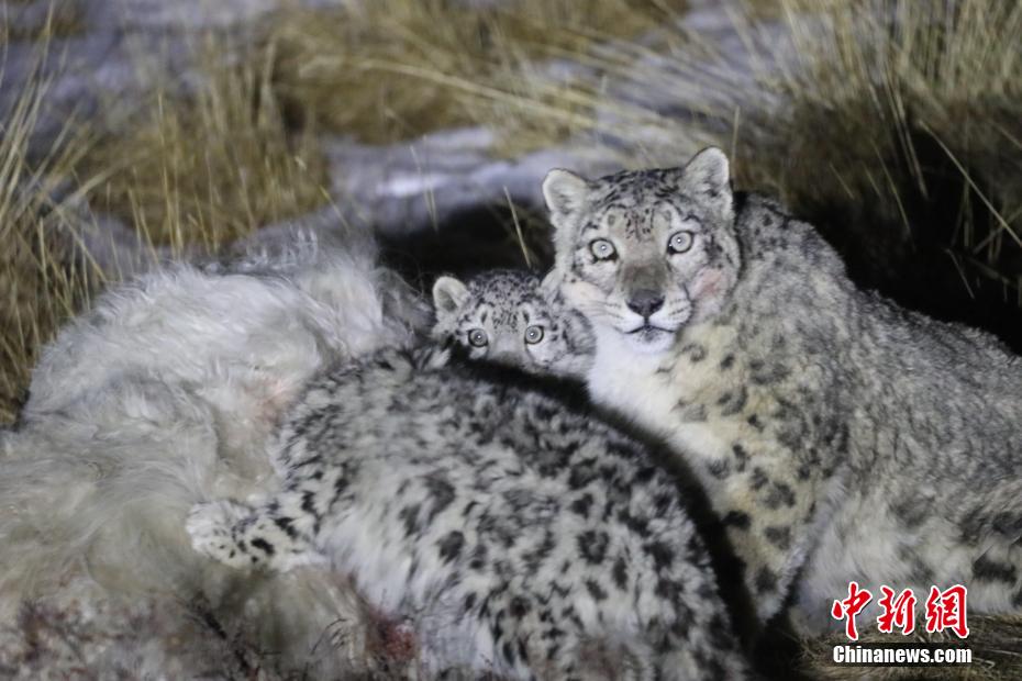 近日,在青海省海西蒙古族藏族自治州天峻縣快爾瑪鄉(xiāng),攝影師近距離拍攝到3只雪豹進(jìn)食畫面。畫面中,3只雪豹正在啃食一只白色牦牛,其中一只雪豹體型較大,大多數(shù)時(shí)間在“放哨”,其他兩只雪豹體型稍小,但一直在“大快朵頤”,吃飽后“歡快”離開。雪豹大多生活在海拔2500米至5000米的高原地區(qū),屬國家一級保護(hù)動(dòng)物,被世界自然保護(hù)聯(lián)盟(IUCN)列為瀕危物種,由于獨(dú)來獨(dú)往,行蹤詭秘,又被人們稱為“雪山隱士”“雪山之王”。