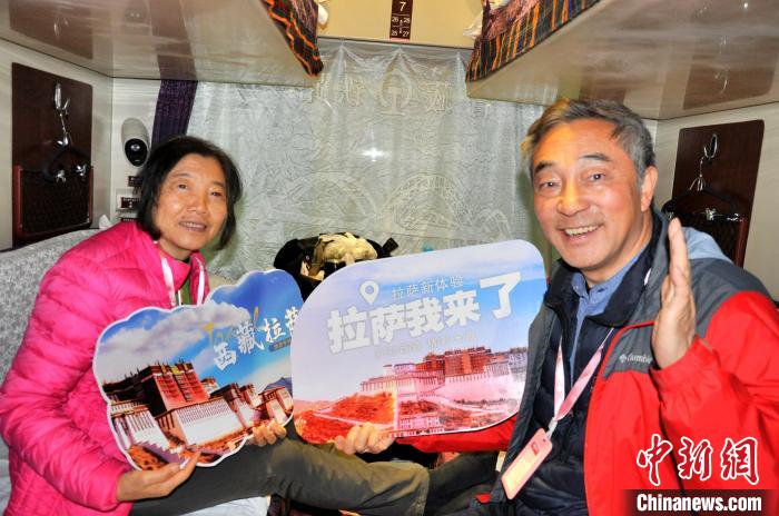 圖為乘坐首趟青甘藏旅游專列的旅客合影。尤東方 攝
