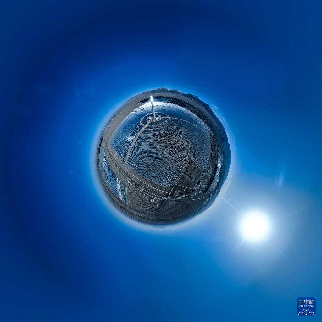 這是4月23日在青海省海西蒙古族藏族自治州德令哈市光伏(光熱)產(chǎn)業(yè)園拍攝的光熱電站(無人機全景照片)。新華社記者 張龍 攝