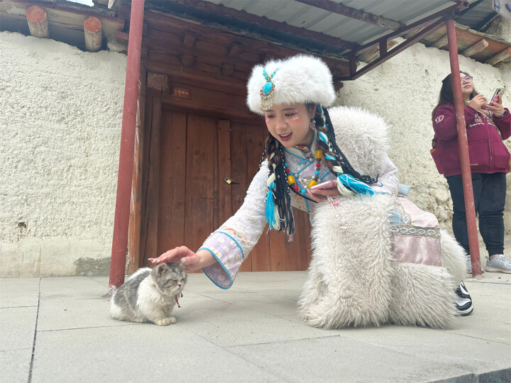 在景區(qū)內(nèi),隨處可見身穿藏族服飾、化上高原紅曬傷妝的游客們變身“扎西和卓瑪”,攝影師圍著她們忙前忙后,快門聲此起彼伏?!班牛谩薄熬褪沁@樣,保持笑容”“下巴揚(yáng)起來”……在攝影師的引導(dǎo)下,““扎西和卓瑪””變換著姿勢(shì),拍下一張張景區(qū)打卡照。