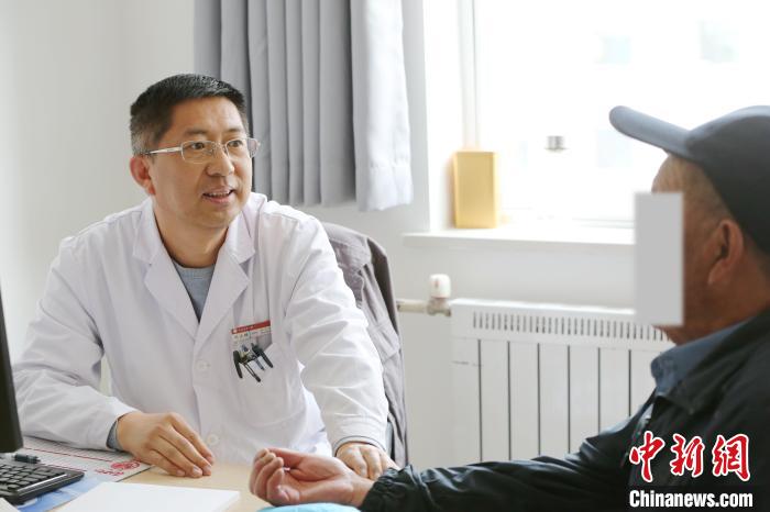 圖為上海援青醫(yī)療人才、青海省中醫(yī)院腦病科副主任遲大鵬接診。張?zhí)砀?攝