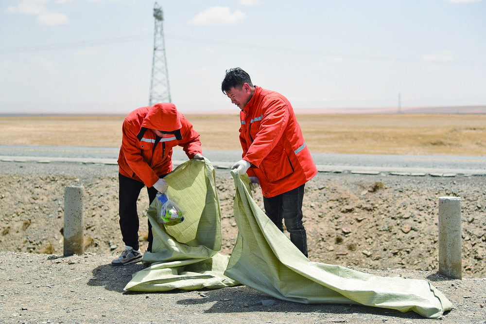 一邊收垃圾,香多才仁一邊對司機宣傳道:“這里是三江源國家公園,也是可可西里世界自然遺產(chǎn)地,這里的生態(tài)環(huán)境需要我們所有人共同守護,希望大家自覺把垃圾扔進垃圾桶?!?/p>