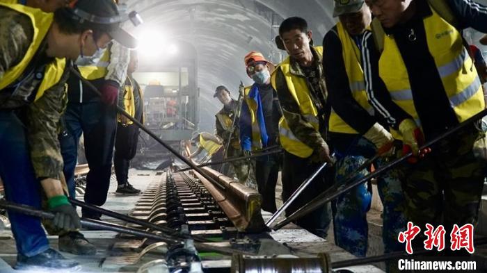 川青鐵路鎮(zhèn)黃段隧道內(nèi)鋪軌作業(yè)現(xiàn)場。成蘭鐵路公司供圖