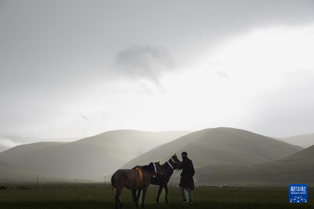 7月27日,兩名藏族群眾牽著馬走進(jìn)賽場。新華社記者 江宏景 攝