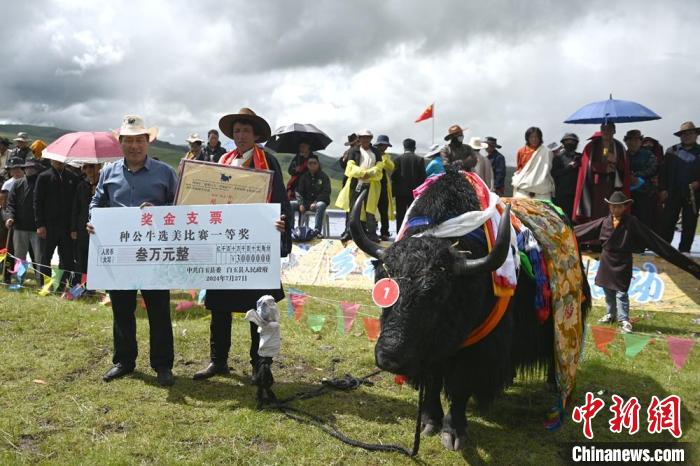經(jīng)現(xiàn)場評審團評選,來自白玉縣阿察鎮(zhèn)阿察村洛真家的牦牛以1158斤重量獲冠軍?!瓣笈_x美”比賽不僅展示了白玉縣牦牛的優(yōu)良品質(zhì),也激發(fā)了牧民們進一步優(yōu)化養(yǎng)殖的熱情。