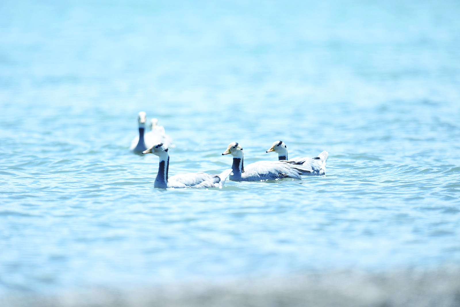 青海湖內搖曳的斑頭雁。