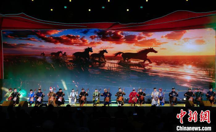 圖為晚會(huì)現(xiàn)場(chǎng)進(jìn)行馬頭琴表演。中新社記者 馬銘言 攝