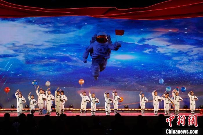 圖為晚會(huì)現(xiàn)場(chǎng)兒童表演舞蹈《浩瀚的家,藍(lán)天的夢(mèng)》。中新社記者 馬銘言 攝