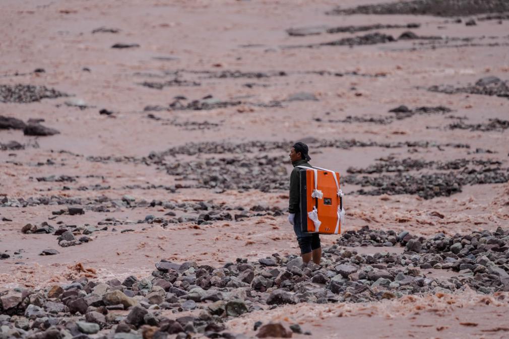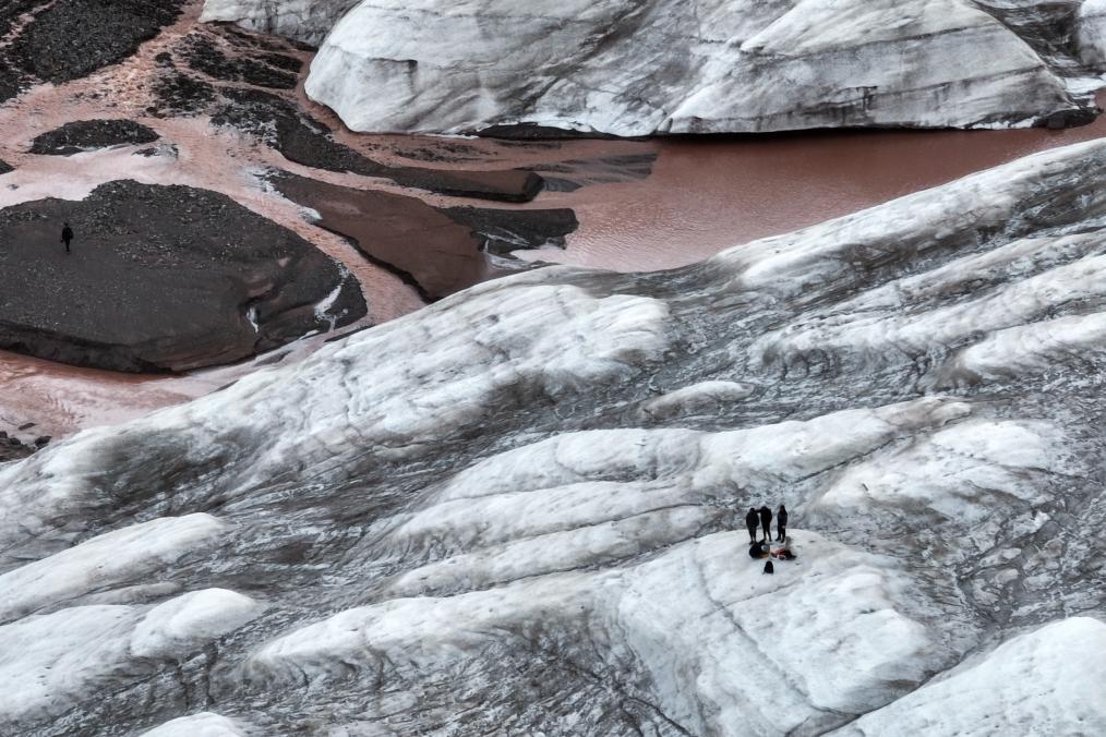 7月25日,科考隊(duì)員在探測(cè)冬克瑪?shù)妆ǎo人機(jī)照片)。新華社記者 伍志尊 攝