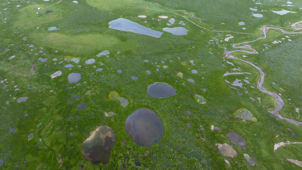這是7月23日在長(zhǎng)江南源拍攝的查旦濕地(無人機(jī)照片)。新華社 潘彬彬 攝