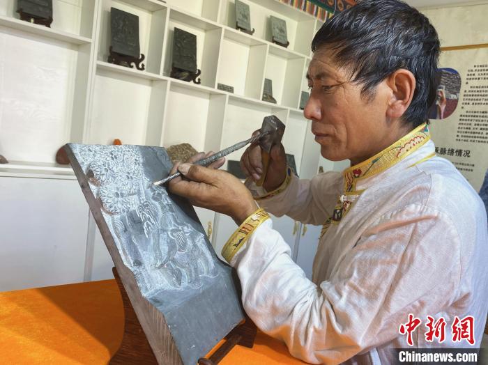 在青海省黃南藏族自治州澤庫縣和日鎮(zhèn)和日村,石刻藝人將佛經(jīng)典籍、人鳥神獸、吉祥圖案等內(nèi)容,刻在大小不一的石板上,栩栩如生。