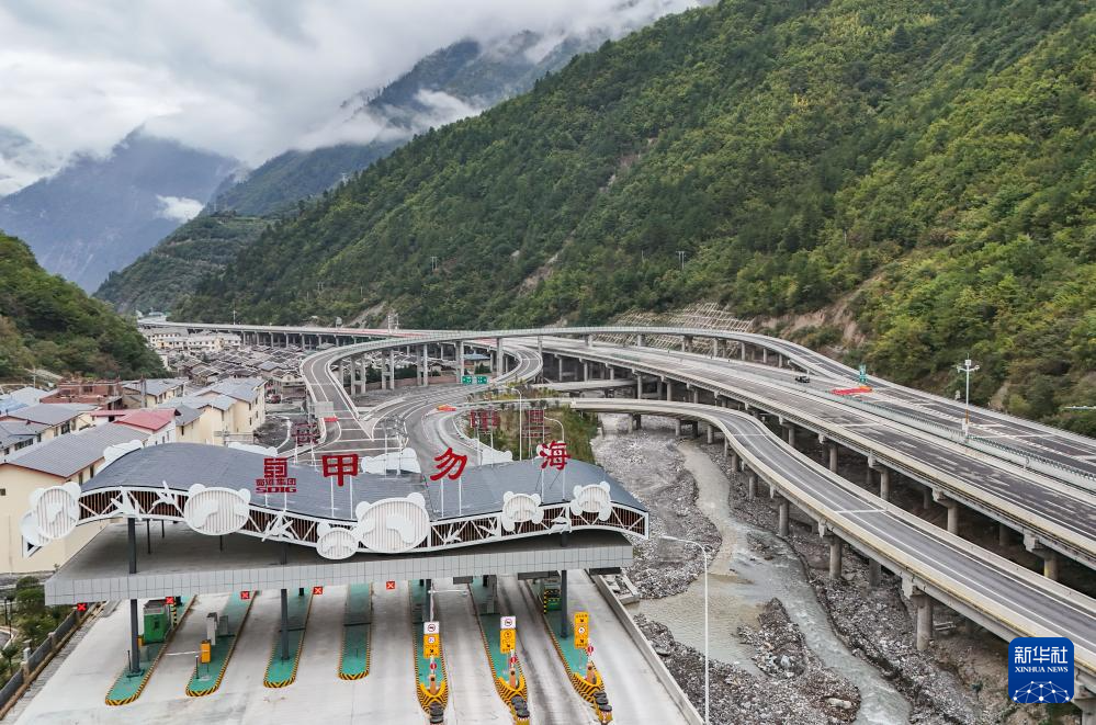 這是10月11日拍攝的正在建設(shè)中的九寨溝—綿陽(yáng)高速公路甲勿海收費(fèi)站(無人機(jī)照片)。九綿高速開通后,從成都至九寨溝縣的時(shí)間將從原來的8小時(shí)縮短至4小時(shí)。新華社記者 王曦 攝