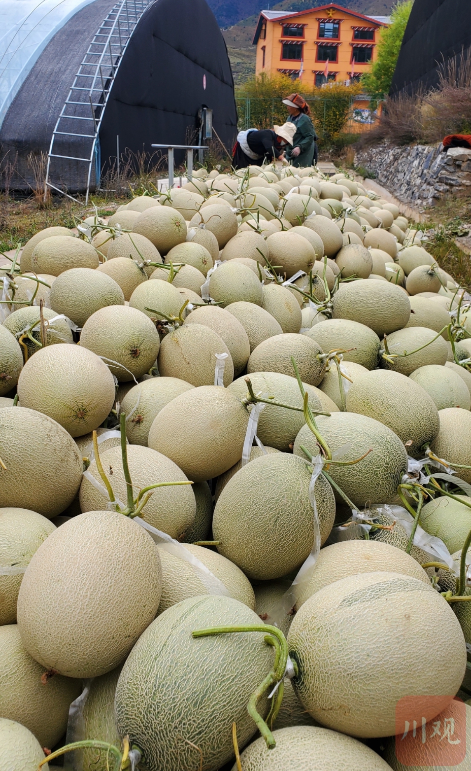 10月24日,位于阿壩州松潘縣川主寺鎮(zhèn)的松潘高原現(xiàn)代農(nóng)業(yè)產(chǎn)業(yè)園區(qū)內(nèi),豐收的高原網(wǎng)紋瓜進(jìn)入采摘期。