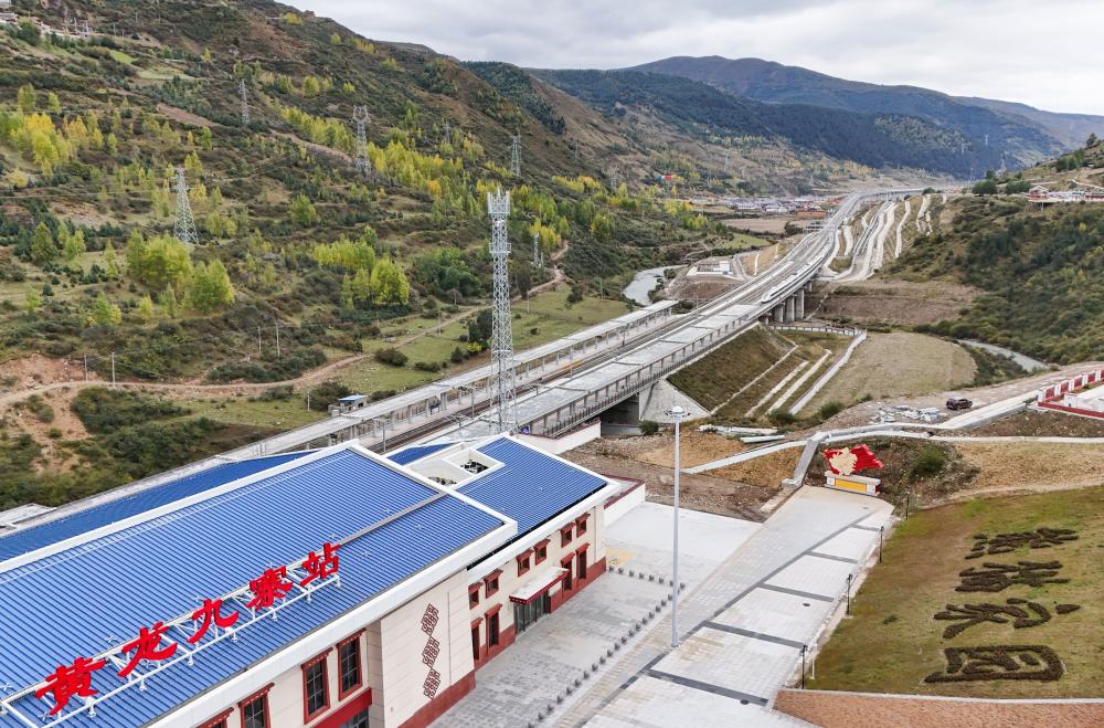 一列動(dòng)車駛?cè)氪ㄇ噼F路黃龍九寨站。新華社記者 王曦 攝