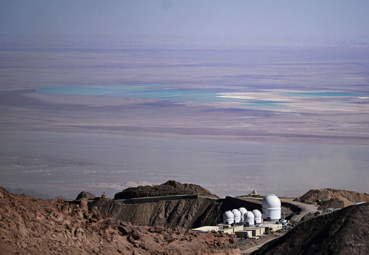 這是4月20日在冷湖鎮(zhèn)賽什騰山拍攝的南京大學(xué)實(shí)施的時(shí)域天文臺(tái)TIDO項(xiàng)目。本組圖片均由新華社記者 張龍 攝