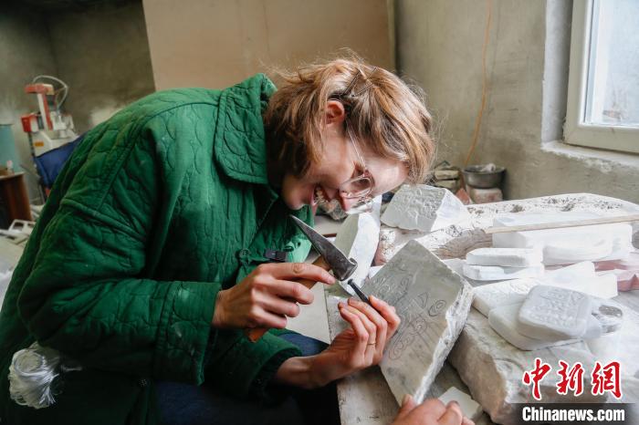 圖為外國嘉賓體驗嘛呢石刻技藝。馬銘言 攝