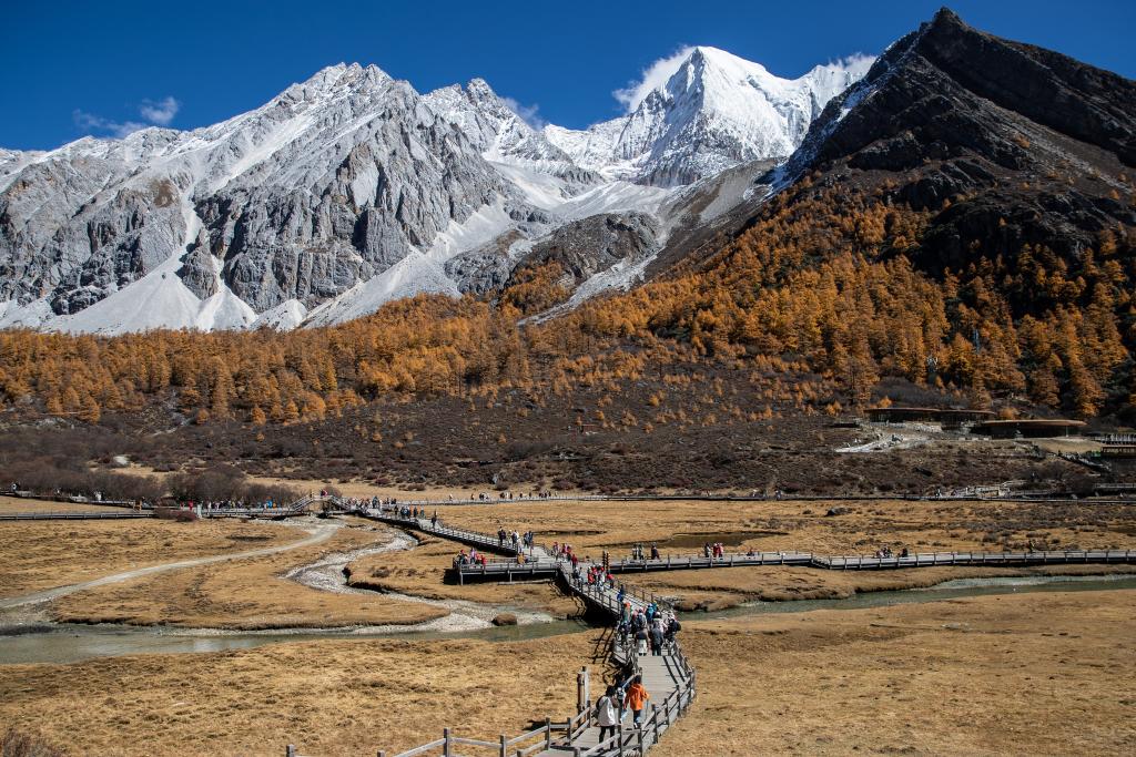 游客在四川省甘孜藏族自治州的稻城亞丁景區(qū)游覽。 新華社記者 儲(chǔ)加音 攝