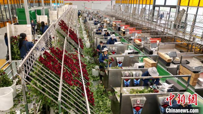 甘肅臨夏回族自治州臨夏市23日寒風(fēng)正勁。步入該市枹罕鎮(zhèn)青寺村的百益億農(nóng)國際鮮花港內(nèi),暖意正濃。引自荷蘭的多個(gè)品種玫瑰花競相開放,它們即將被打包發(fā)往北京、上海、廣州,以及東南亞等地。