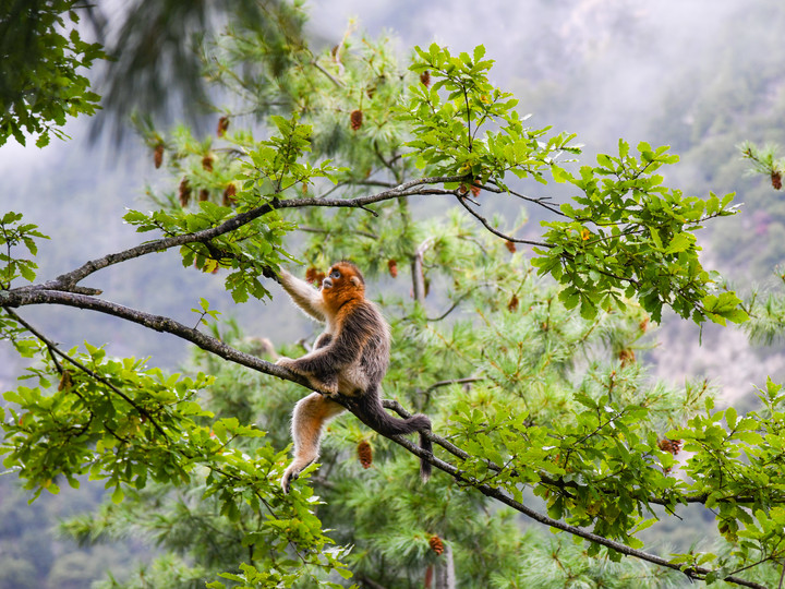 10月11日在四川白河國家級自然保護區(qū)里拍攝的川金絲猴。新華社記者 王曦 攝