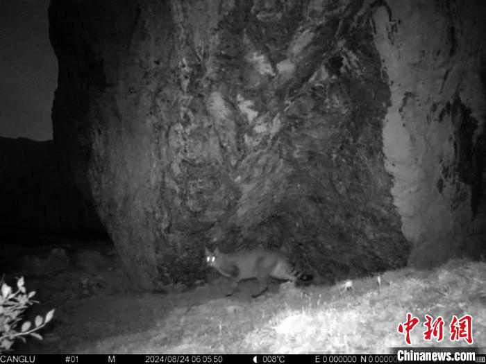 紅外相機拍攝到的荒漠貓照片。九寨溝景區(qū)管理局供圖