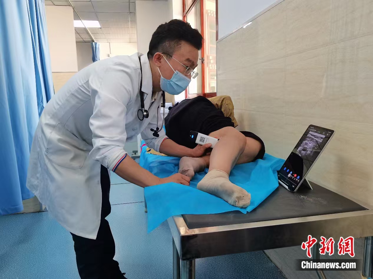 2024年7月,“同心·共鑄中國心”2024甘孜行活動期間,清華大學(xué)第一附屬醫(yī)院副院長胡暢在甘孜白玉縣為當?shù)孛癖娺M行診療。 北京同心共鑄公益基金會供圖