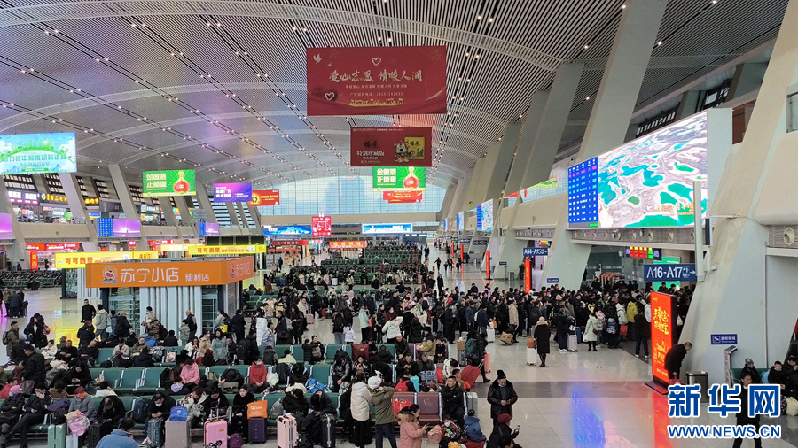 春運(yùn)首日,旅客在西寧火車站候車大廳內(nèi)候車。受訪單位供圖