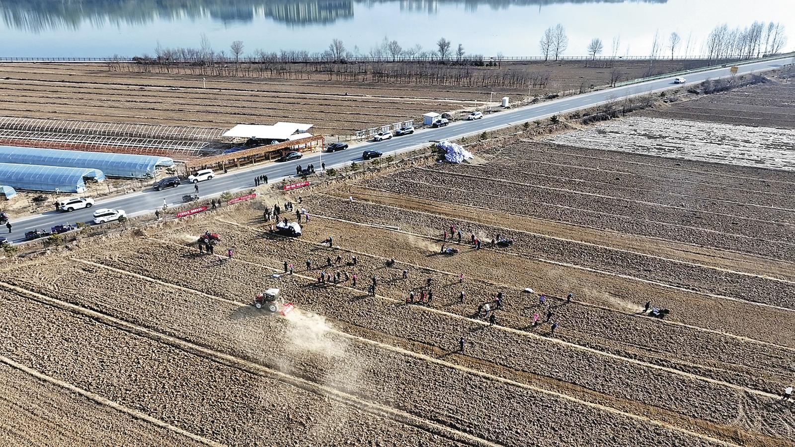 春暖乍寒,青海省黃南藏族自治州由北至南進入春耕時節(jié),沿黃河岸邊的馬康公路向南行駛,兩旁田間地頭的農人駕駛著大大小小的機械,忙碌著春耕生產。