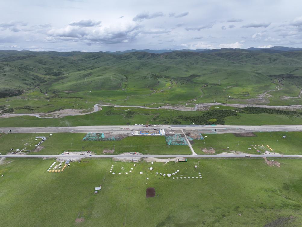 6月23日,無(wú)人機(jī)空中俯瞰新建西寧至成都鐵路紅原站。(成蘭鐵路有限責(zé)任公司供圖)