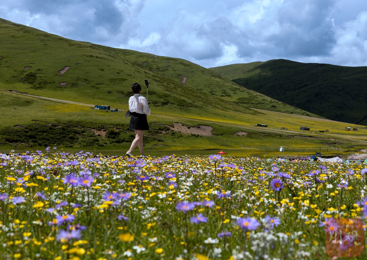 6月25日,游人徜徉俄么塘草原花海間。陳先林 攝