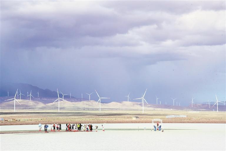 游客在鹽湖拍照打卡。蘇烽 攝
