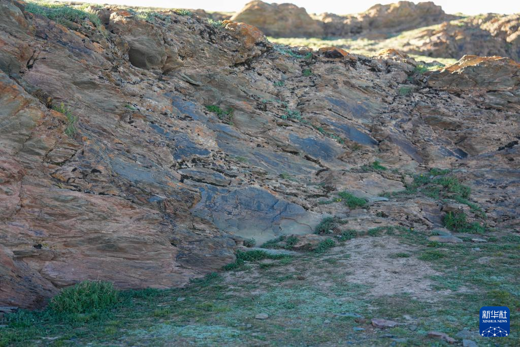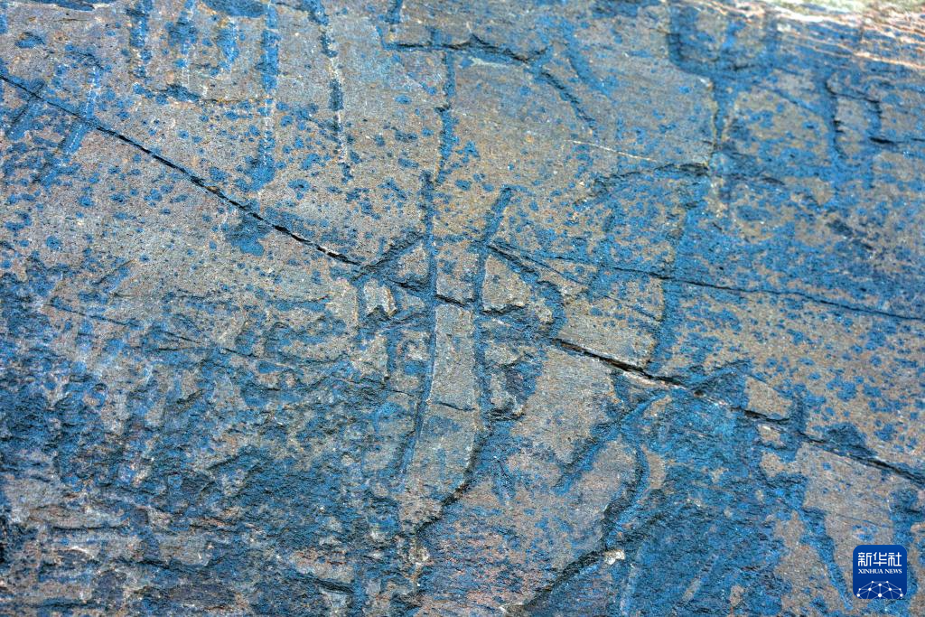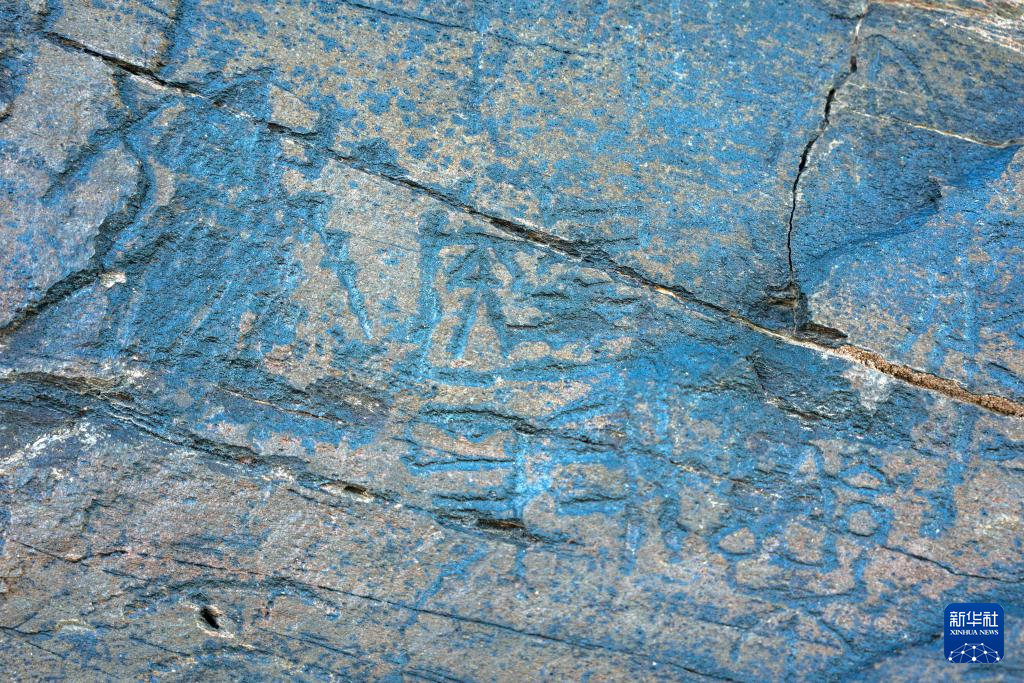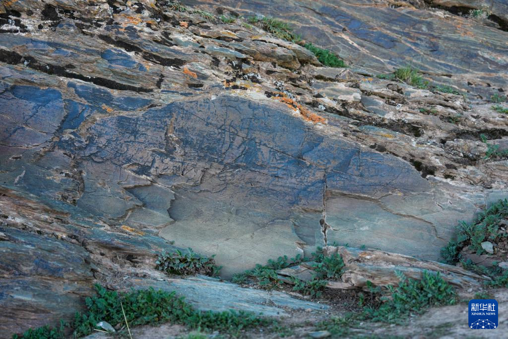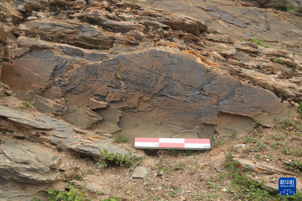文物考古工作者于2023年7月在青海省瑪多縣扎陵湖畔對尕日塘秦刻石進(jìn)行現(xiàn)場考察時拍攝的該刻石遺跡照片。新華社發(fā)