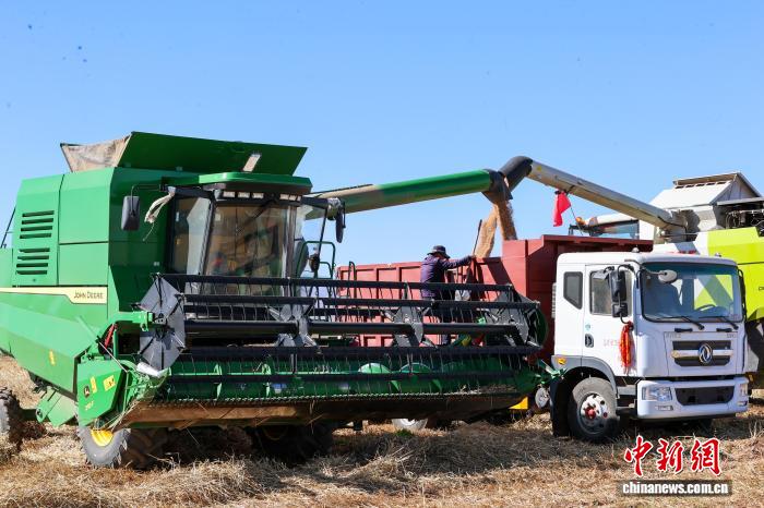 圖為小麥收割現(xiàn)場。中新社記者 薛蒂 攝