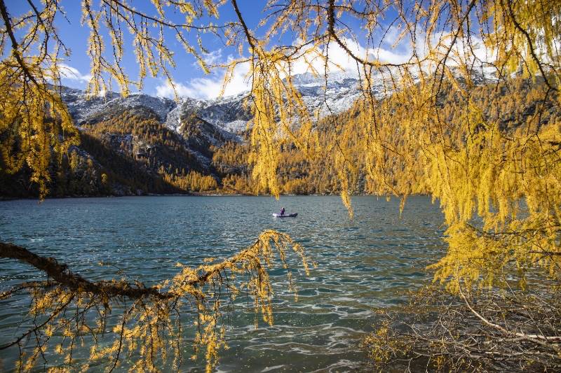 近期,海拔4000多米的四川省甘孜藏族自治州道孚縣甲玉拉措景區(qū)迎來一年中最美的季節(jié)。澄澈如鏡的湖面倒映著金黃的落葉杉林,遠處雪山皚皚,美麗的高原秘境畫卷吸引著八方游客。