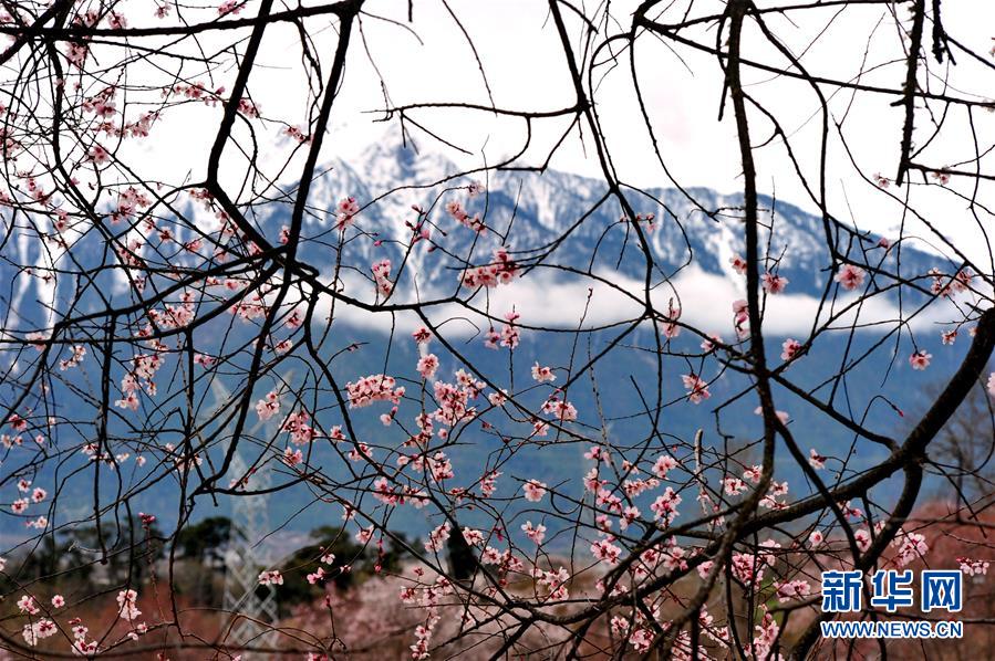 波密境內(nèi)桃花與雪山遙相輝映。資料圖 圖片來(lái)自新華網(wǎng)