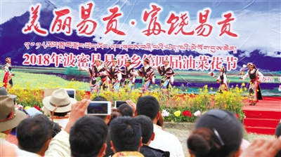 為豐富第四屆油菜花節(jié)活動(dòng)的內(nèi)容,提高油菜花節(jié)舉辦的內(nèi)涵,易貢鄉(xiāng)黨委、政府還精心準(zhǔn)備了舞蹈、歌曲、小品等各具特色的26個(gè)文藝匯演節(jié)目作為開(kāi)幕式文藝演出。在開(kāi)幕式當(dāng)天下午,男、女長(zhǎng)跑,抱石頭,人力倒拉,拔河比賽等群眾文體活動(dòng)紛紛上演,各種各樣精彩紛呈的活動(dòng)讓這一天如同過(guò)年一般熱鬧,從周?chē)s來(lái)參加活動(dòng)的人們開(kāi)的車(chē)足足停滿了兩個(gè)足球場(chǎng)大的場(chǎng)地。