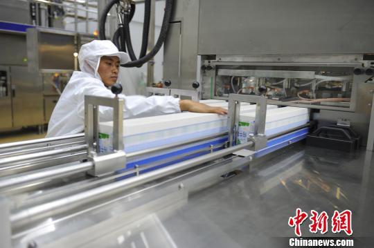 圖為9月7日西藏首個(gè)自主乳制品品牌投產(chǎn)的包裝車(chē)間內(nèi)產(chǎn)品流水線(xiàn)。 張偉 攝