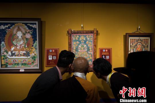 圖為與會人員參觀藝術節(jié)唐卡精品展。 何蓬磊 攝