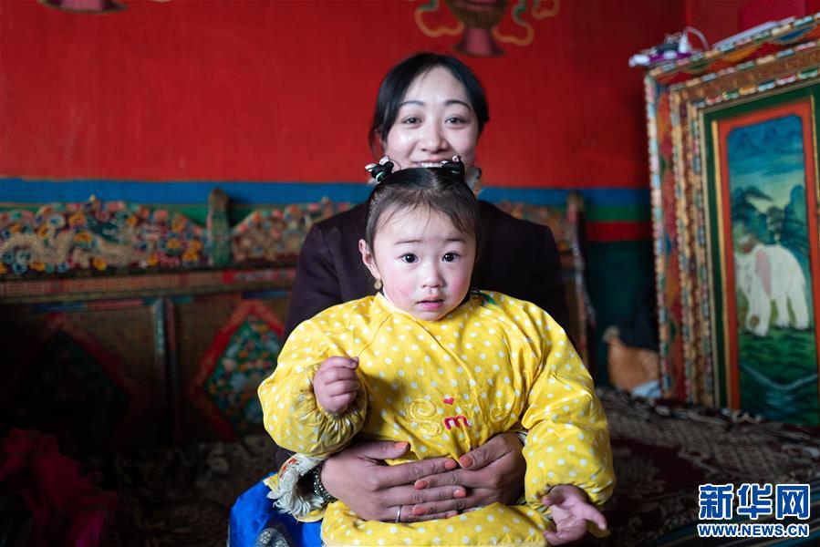 雙湖縣嘎措鄉(xiāng)瓦日香瓊村牧民在家照看孩子(1月31日攝)。 新華社記者 普布扎西 攝